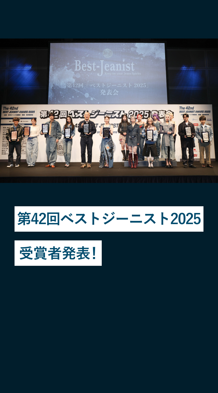 「ベストジーニスト」AWARDは、日本ジーンズ協議会が、ジーンズの良さを多くの方々に知っていただこうという趣旨で行っているものです。「ベストジーニスト」には、『一般選出部門』『協議会選出部門』の部門があり、各部門ごとに、毎年1回選出・表彰される賞です。